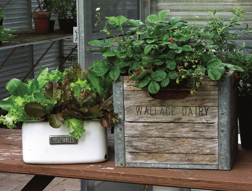 These containers have a water reservoir at the bottom. Plants take up water as needed through capillary action.