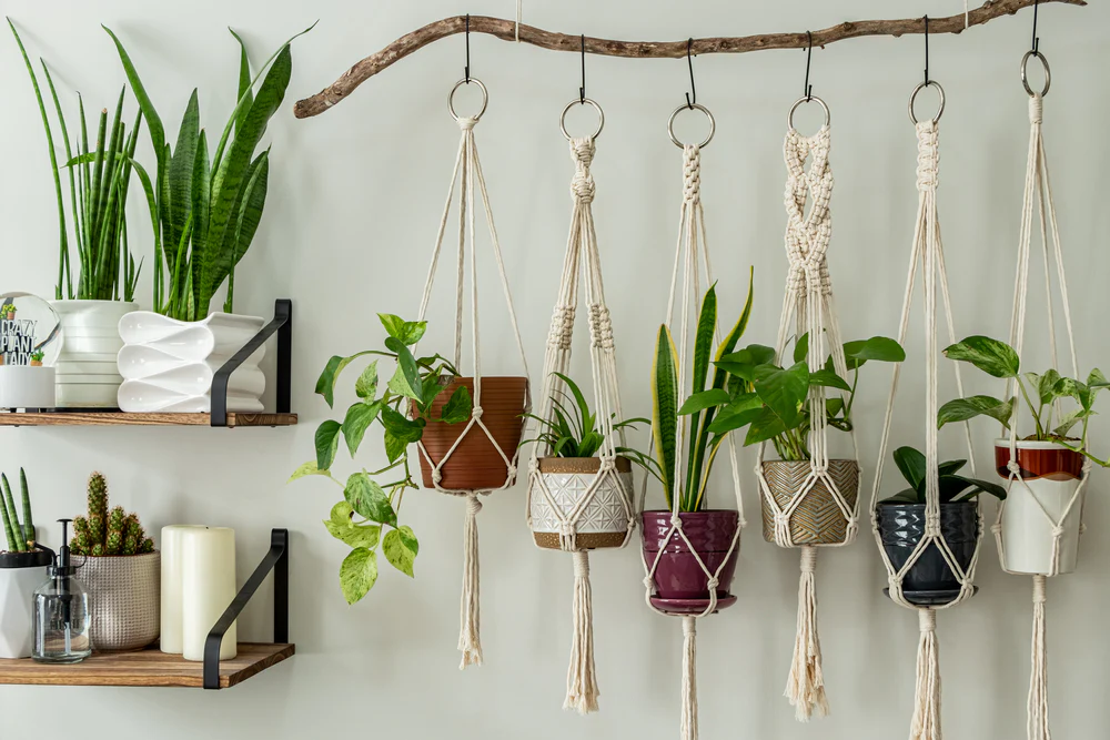 • Hanging planters using twine