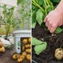 Growing potatoes in containers reduces pest risk and allows for easy harvest.
